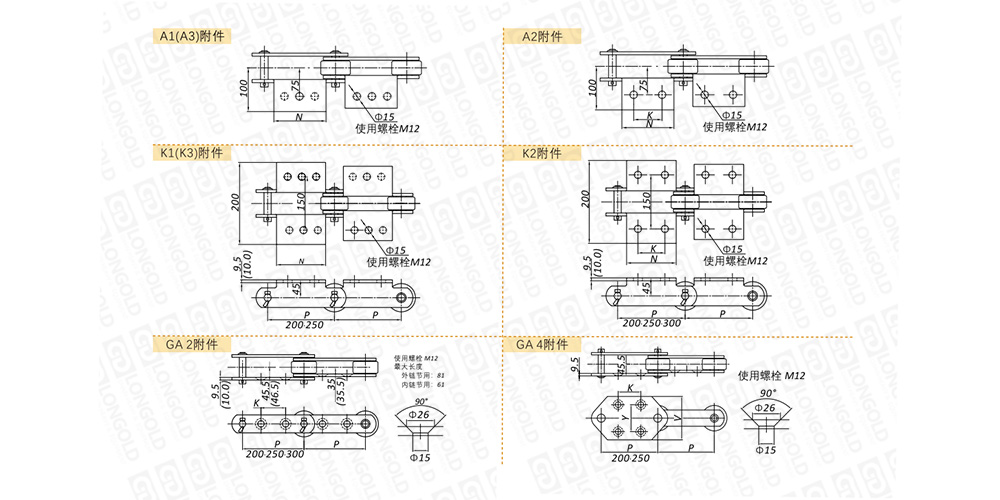 附件是為了將夾具安裝在鏈條上的零部件??筛鶕?jù)客戶要求設(shè)定安裝間隔。