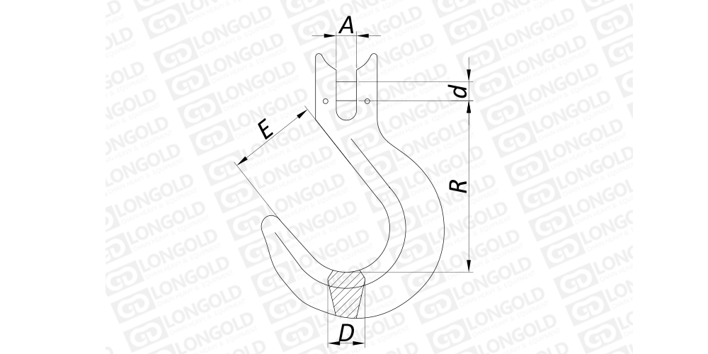 上圖為高強度羊角吊鉤的結(jié)構(gòu)圖。
