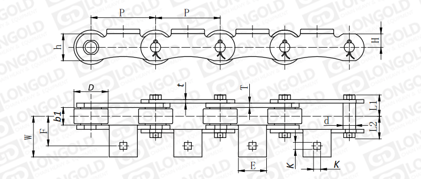 附件是為了將夾具安裝在鏈條上的零部件。可根據(jù)客戶要求設(shè)定安裝間隔。