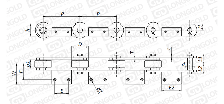 附件可配裝在每一個鏈節(jié)以上的鏈節(jié)間隔,如每偶數(shù)鏈節(jié)安裝,為了容易進行保養(yǎng),安裝在外鏈節(jié)。