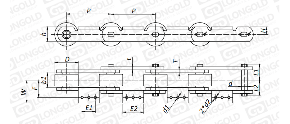 附件是為了將夾具安裝在鏈條上的零部件??筛鶕?jù)客戶要求設(shè)定安裝間隔。