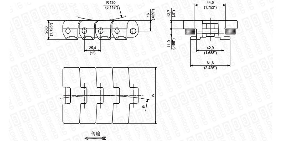 轉(zhuǎn)彎鏈板1"節(jié)距 |
