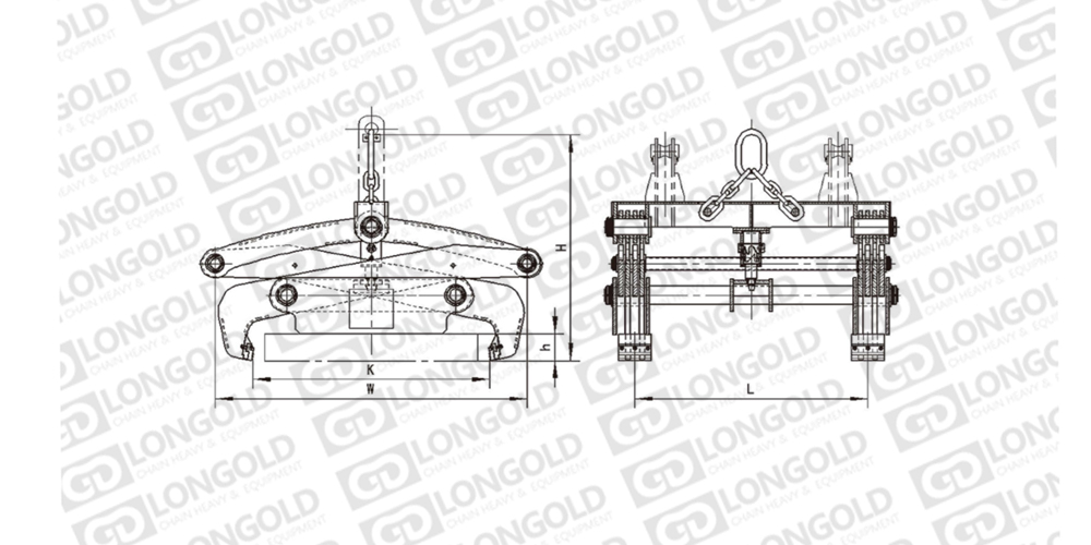 機(jī)械杠桿重力式夾鉗,采用杠桿的工作原理,依靠板(方)坯自重夾持板坯并緊鎖,開閉機(jī)構(gòu)為螺旋往復(fù)式,能自動(dòng)實(shí)現(xiàn)夾鉗臂的開閉動(dòng)作,可配置機(jī)械或聲光電指示裝置增加開閉動(dòng)作可靠性。夾鉗不需要任何動(dòng)力源,結(jié)構(gòu)簡(jiǎn)單合理,動(dòng)作靈活??蓪?shí)現(xiàn)單塊、多塊板(方)坯的吊運(yùn)。