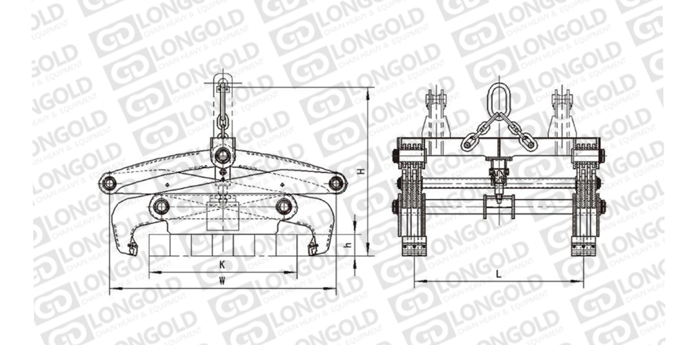 機(jī)械杠桿重力式夾鉗,采用杠桿的工作原理,依靠板(方)坯自重夾持板坯并緊鎖,開(kāi)閉機(jī)構(gòu)為螺旋往復(fù)式,能自動(dòng)實(shí)現(xiàn)夾鉗臂的開(kāi)閉動(dòng)作,可配置機(jī)械或聲光電指示裝置增加開(kāi)閉動(dòng)作可靠性。夾鉗不需要任何動(dòng)力源,結(jié)構(gòu)簡(jiǎn)單合理,動(dòng)作靈活??蓪?shí)現(xiàn)單塊、多塊板(方)坯的吊運(yùn)。