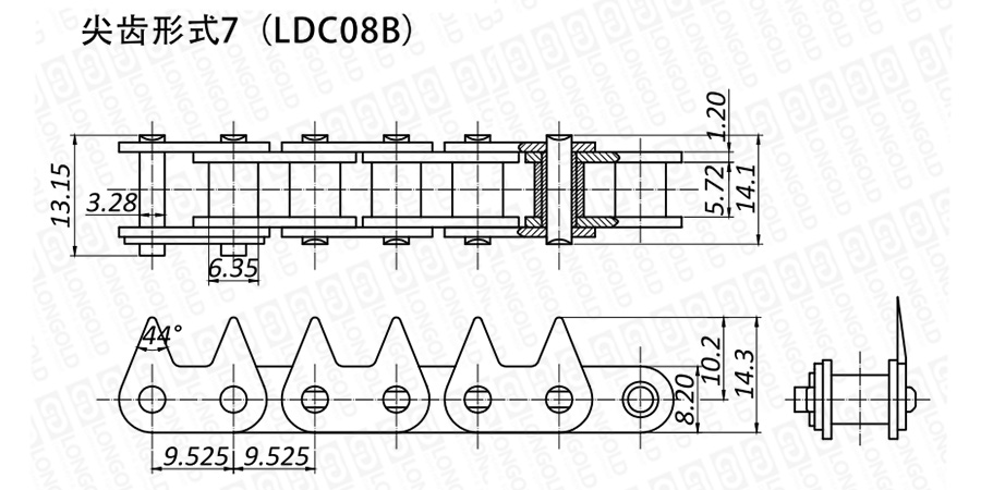上圖為不銹鋼尖齒鏈VII的結(jié)構(gòu)圖。