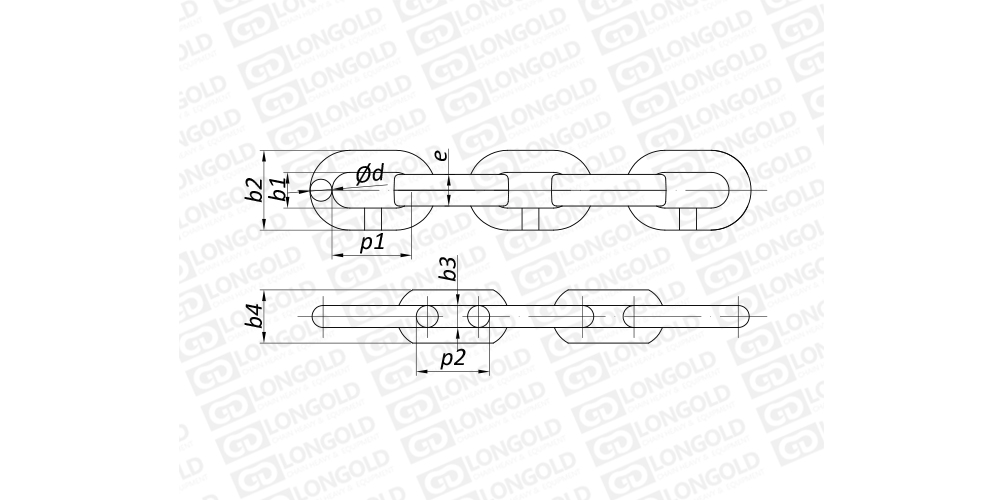 上圖為強(qiáng)化型礦用寬帶鏈的結(jié)構(gòu)圖。