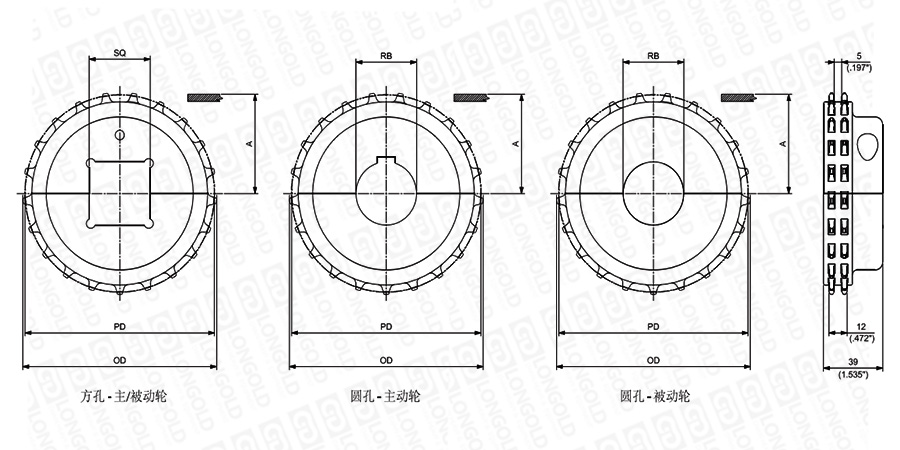 1.圓孔鏈輪表示直徑,方孔鏈輪表示邊長。