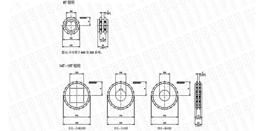 1.圓孔鏈輪表示直徑,方孔鏈輪表示邊長(zhǎng)。