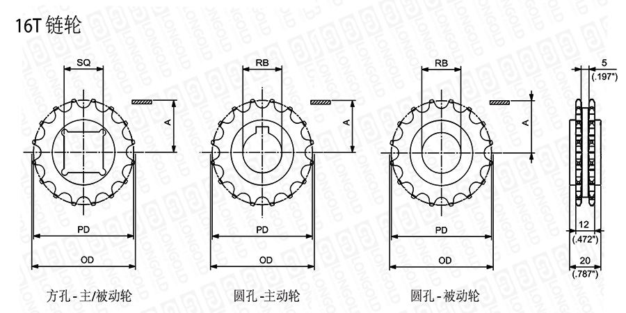 1.圓孔鏈輪表示直徑,方孔鏈輪表示邊長(zhǎng)。