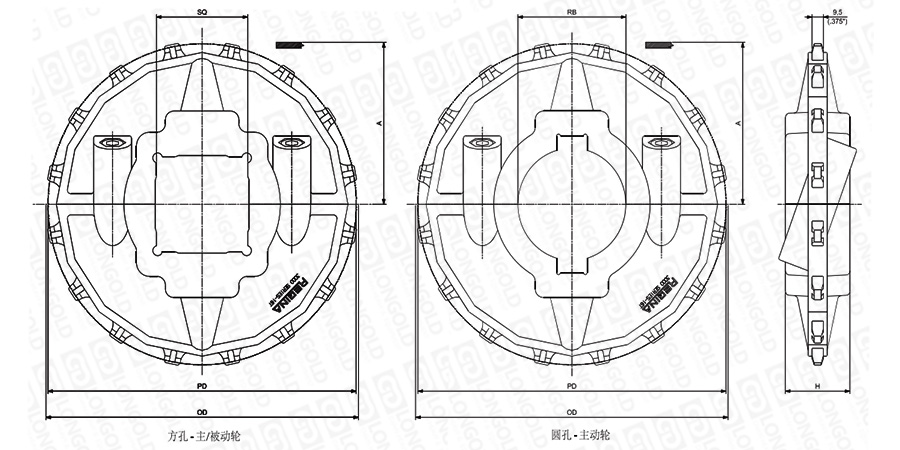 分體式鏈輪設計便于主動輪和從動輪的組裝和拆卸,無需拆裝滾軸,減少安裝和維修成本。