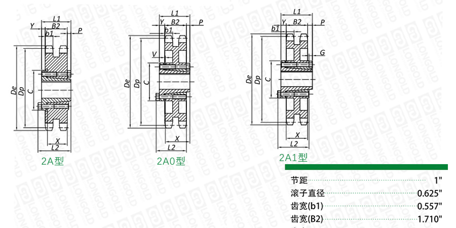 ■雙排A1型鏈輪尺寸表