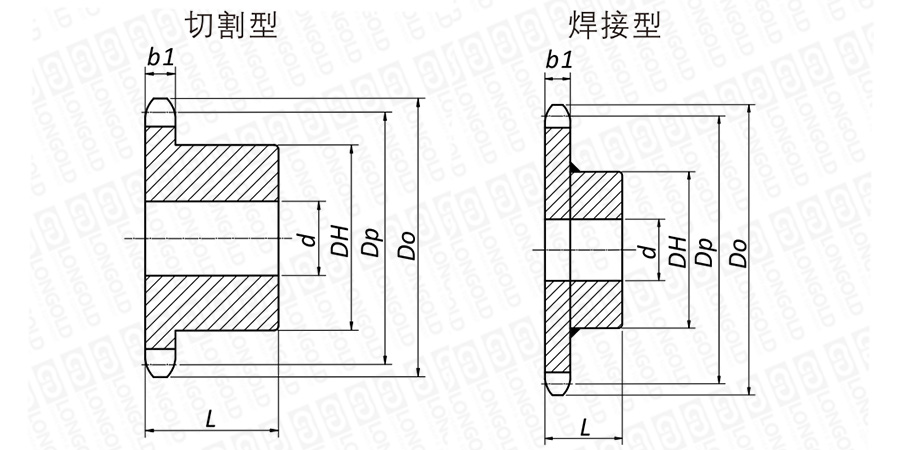 2.當LDC雙倍節(jié)距鏈輪本體為S滾子時,或者作用齒數(shù)為15(有效齒數(shù)為30)以上時,可以使用A系列標準鏈輪。