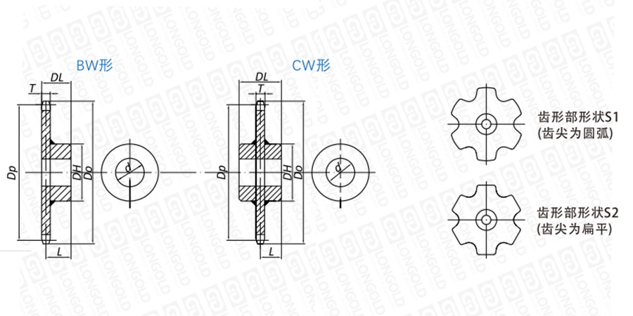 是與鏈輪齒形部貫通的凸臺,作為兩個凸臺形從兩側(cè)焊接而成的形式。適用LDC12200LDC6205以上尺寸的鏈條。