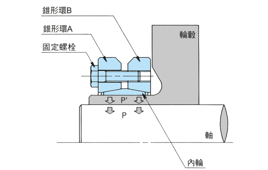 結構簡單,只有內環(huán)和2個錐形環(huán)以及固定螺栓組成。