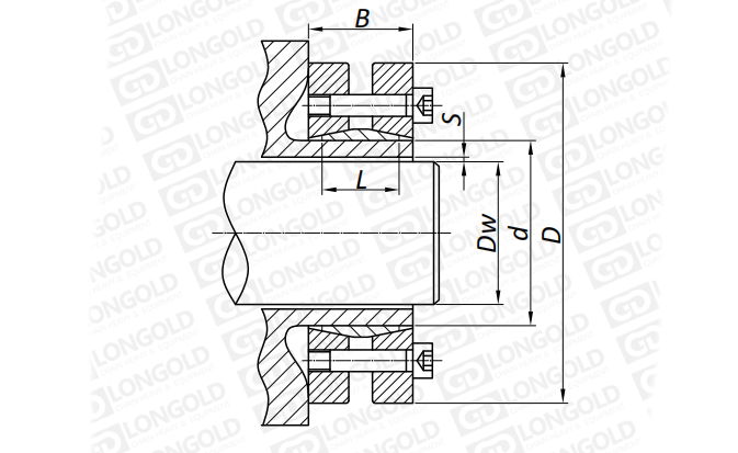 上圖為SD型脹緊套的結(jié)構(gòu)圖。