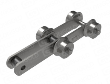 在兩側(cè)安裝側(cè)置滾輪,或者頂部安裝頂置滾輪的大型輸送鏈條。
