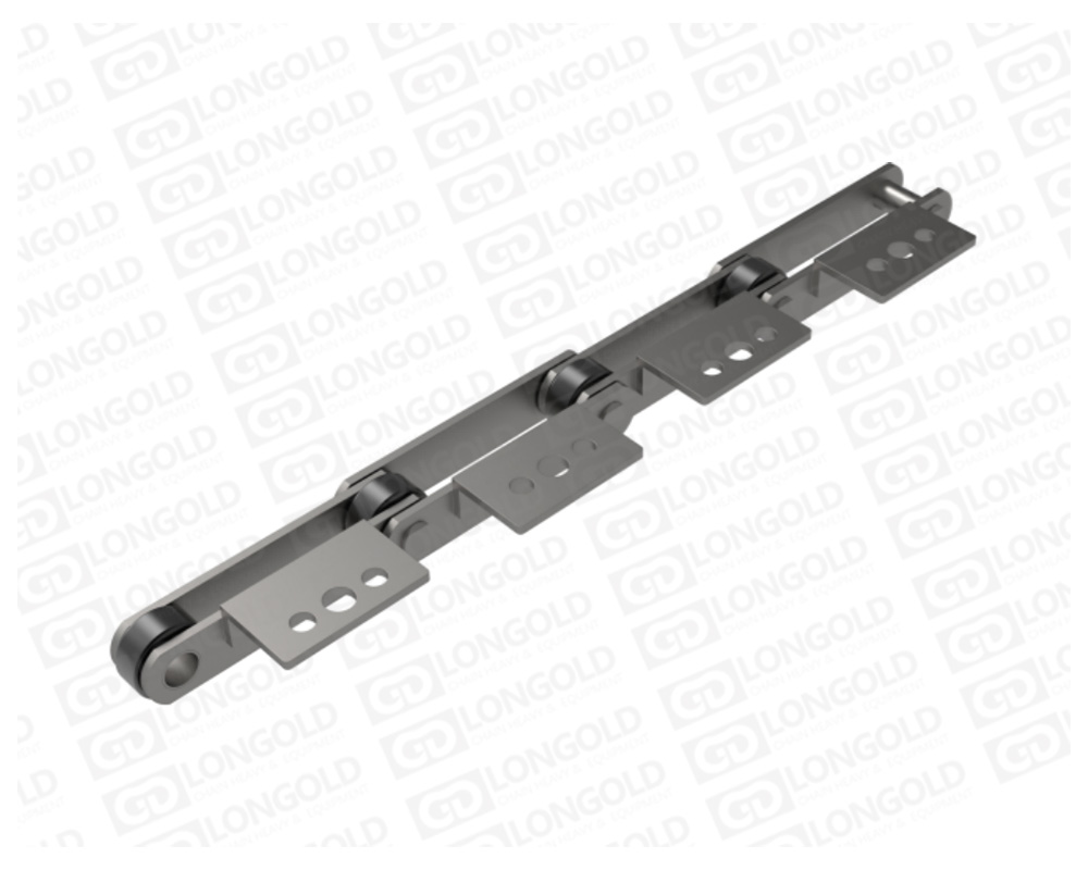以大型輸送鏈為基本,安裝加寬的鏈板和摩擦阻力較小的大滾子,可以直接在鏈板上裝載重物的鏈條,有著廣泛的用途。