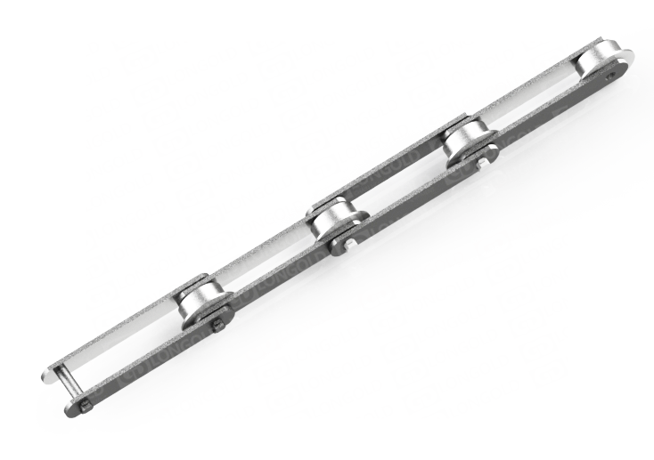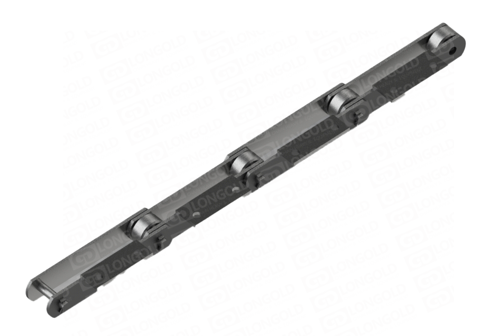 此種輸送鏈是由雙節(jié)距鏈條衍生而來的,鏈條節(jié)距為非常用規(guī)格,通過裝備特殊附件使鏈條滿足特定的工作需求