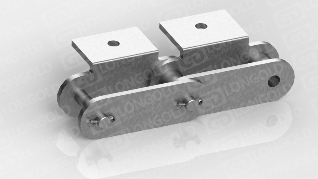 鏈條由雙倍節(jié)距鏈條衍生而來(lái),通過(guò)裝備標(biāo)準(zhǔn)附件或非標(biāo)附件使鏈條滿足特定的工作需求。
