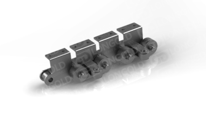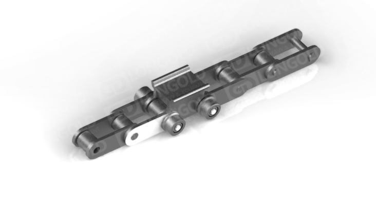 帶側(cè)置滾輪的汽車(chē)汽車(chē)生產(chǎn)線(xiàn)鏈條,側(cè)置滾輪能減少鏈條運(yùn)動(dòng)時(shí)的摩擦阻力,使鏈條能夠更加順暢地在軌道上運(yùn)行。