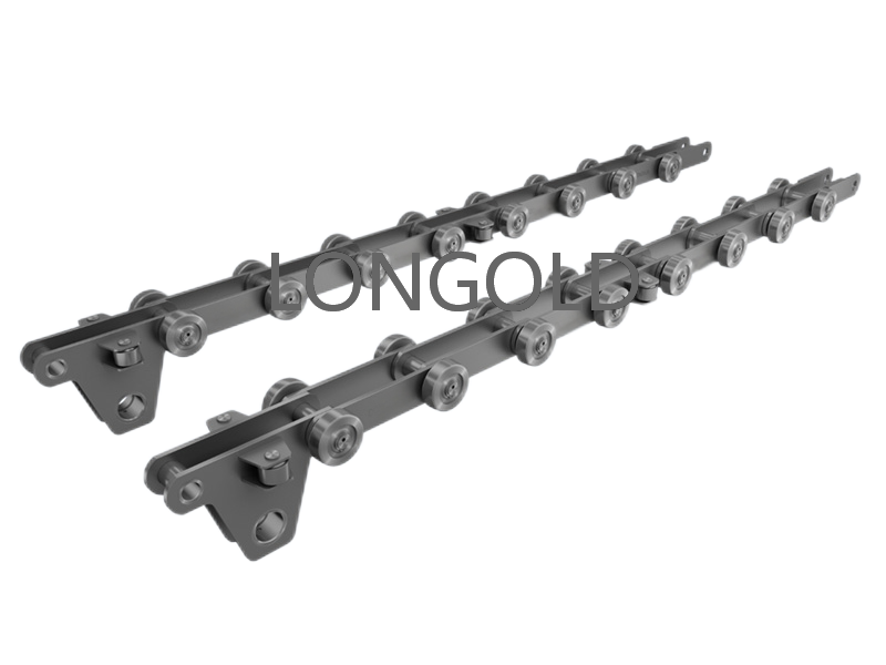 由鏈板、銷軸、滾子等組成。鏈板一般采用高強度合金鋼制造,經過精密加工和熱處理,以確保其具有足夠的強度、硬度和耐磨性。銷軸和滾子也采用優(yōu)質鋼材,經過特殊處理,以提高其承載能力和耐磨性。