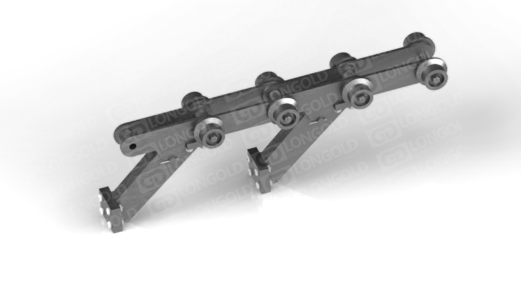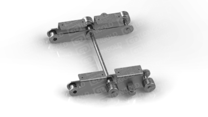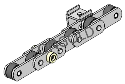 帶側置滾輪的汽車汽車生產線鏈條,側置滾輪能減少鏈條運動時的摩擦阻力,使鏈條能夠更加順暢地在軌道上運行。