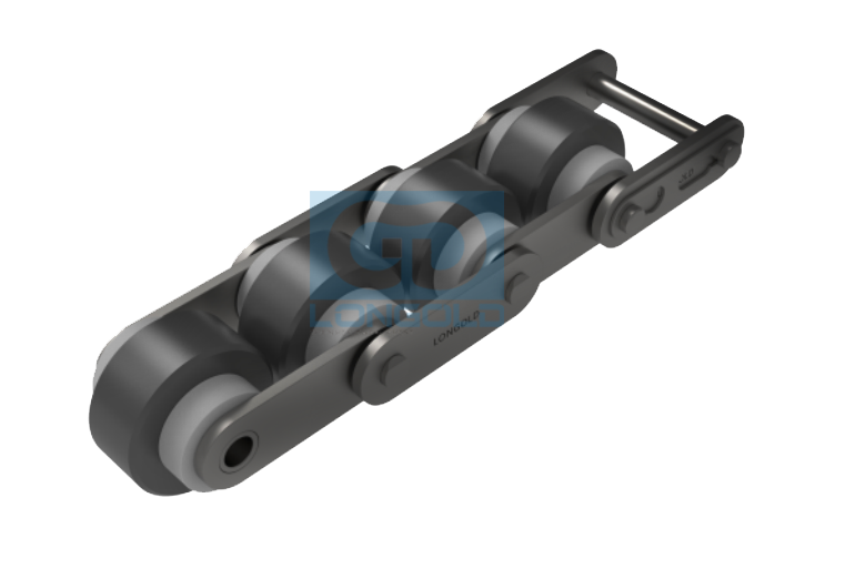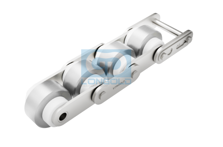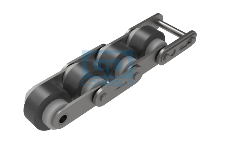 采用小直徑滾子與大直徑滾子組合的獨特結構,實現了3倍的高速輸送。和其他輸送鏈條相比,同等的輸送物速度時,倍速鏈的運行速度更低,運行噪音也更低,可以低噪音地進行堆積。鏈條本體為為鋼制,滾子為工程塑料制或者鋼制。