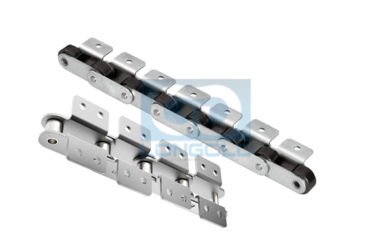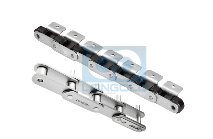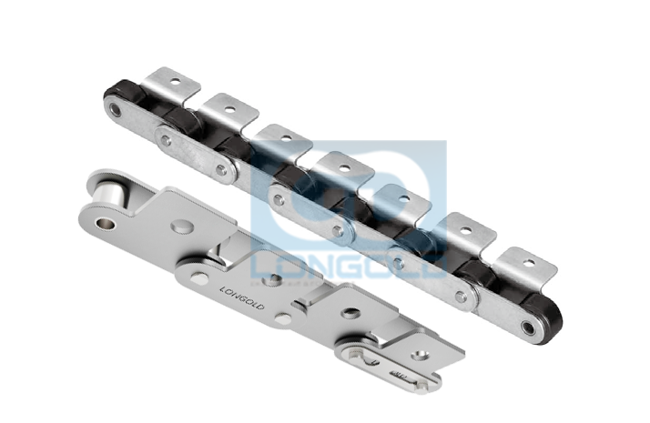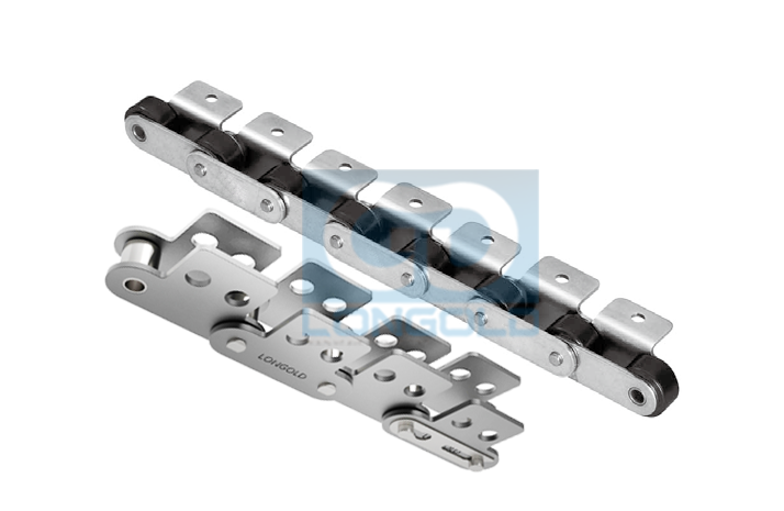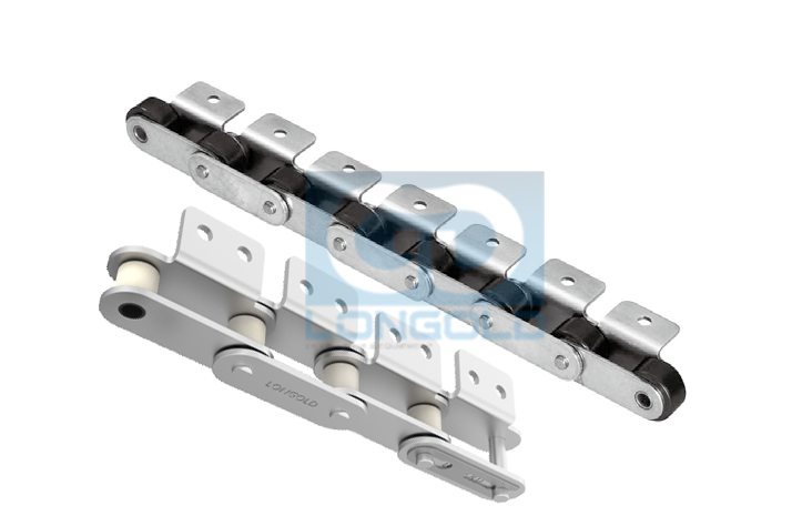 使用超級(jí)工程塑料制滾子,本體為不銹鋼鋼制的雙倍節(jié)距鏈條。在套筒和滾子之間可無加油使用。實(shí)現(xiàn)了輕量化和低噪音化。鏈條單側(cè)加裝單孔彎板附件或者兩孔彎板附件,附件表示為A1或A2。