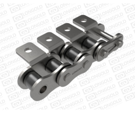 帶LD180以上的大型尺寸的帶附件鏈條。主要附件形式有雙側(cè)帶直立單孔翼板附件,雙側(cè)帶單孔彎板附件,雙側(cè)帶雙孔彎板附件等,客戶可根據(jù)實(shí)際需要選擇合適的附件形式。