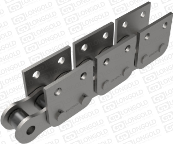 本體鏈條為A系列標(biāo)準(zhǔn)滾子鏈、B系列標(biāo)準(zhǔn)滾子鏈或者雙倍節(jié)距滾子鏈,鏈條上加裝各種非標(biāo)附件。