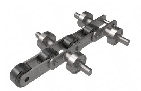 專門用于手套大型先進(jìn)流水線生產(chǎn)的輸送鏈條,鏈條帶側(cè)置滾輪,兩側(cè)的特殊附件能很好的固定手套,方便手套的運(yùn)輸。