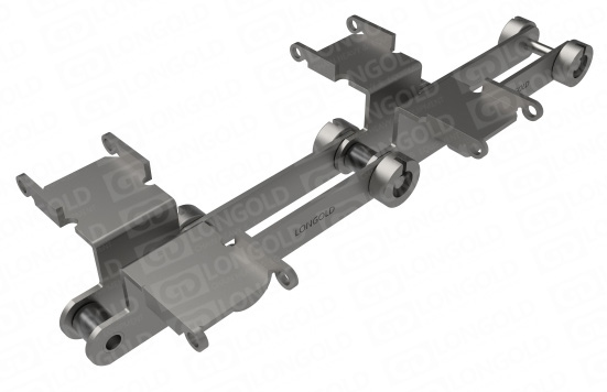專門用于手套大型先進(jìn)流水線生產(chǎn)的輸送鏈條,兩側(cè)附件的軸延長(zhǎng),適合更長(zhǎng)尺寸手套的生產(chǎn)。
