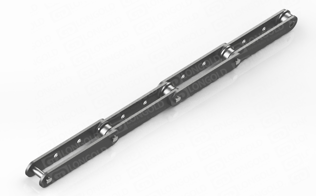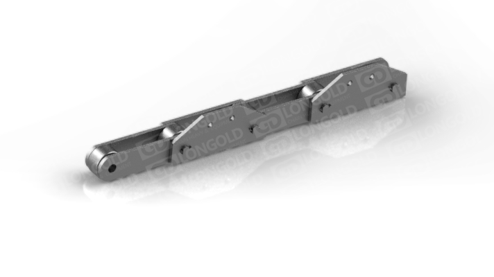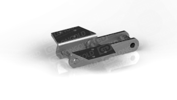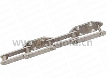 帶有 BGA4 附件,即鏈條一側(cè)的鏈板上下各有一個折彎板,折彎板各帶兩個孔,但與SGA4附件有所不同,BGA4附件的附板形狀為梯形。