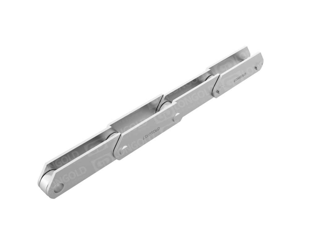 以輸送鏈為基本,安裝加寬的鏈板和摩擦阻力較小的大滾子,可以直接在鏈板上裝載重物的鏈條。采用相當(dāng)于SUS304不銹鋼材質(zhì)具有較高耐腐蝕性。