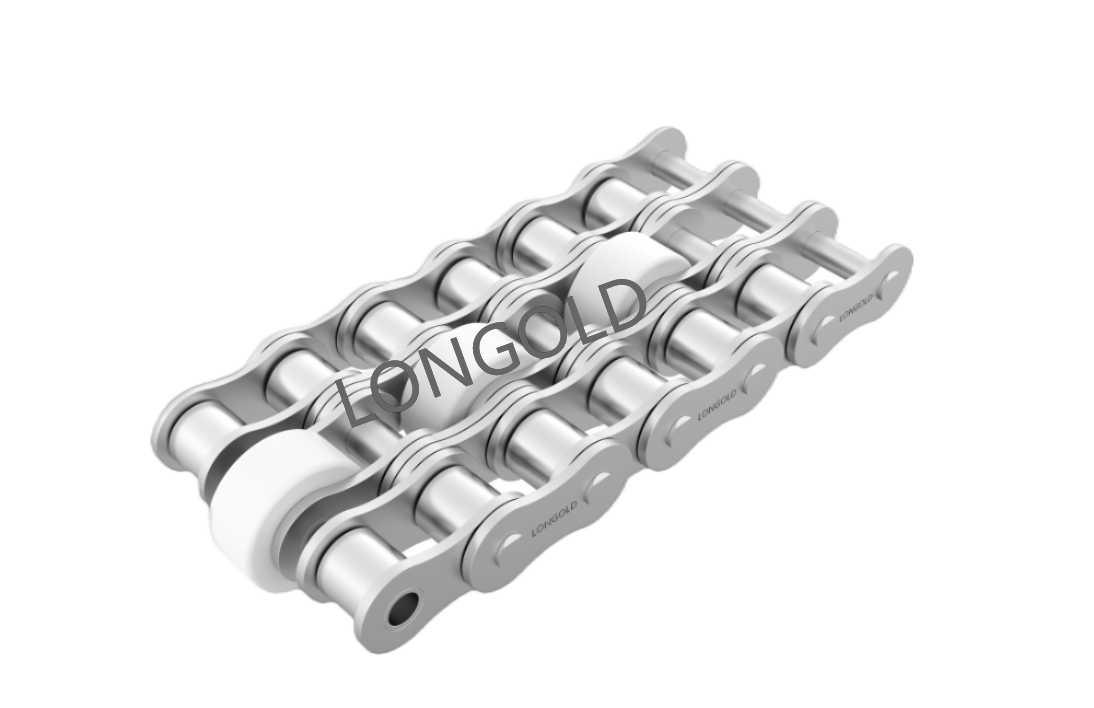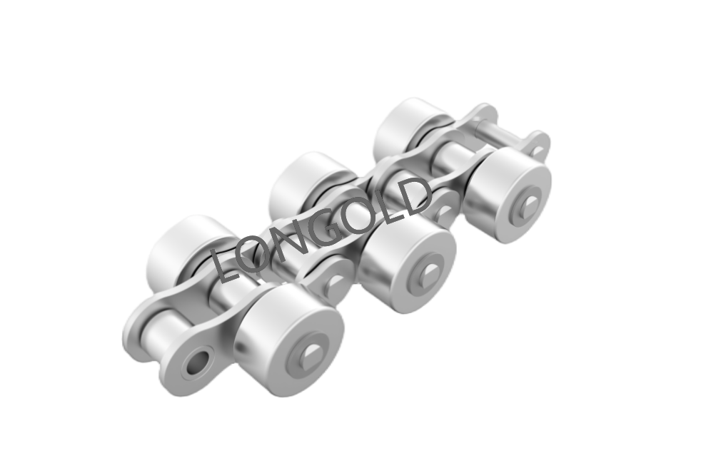 帶頂置滾輪輸送鏈設計用于在輸送系統(tǒng)中提供平穩(wěn)的物料搬運,頂置滾輪有助于減少摩擦,特別是在需要鏈條在特定角度或方向上移動的應用中。