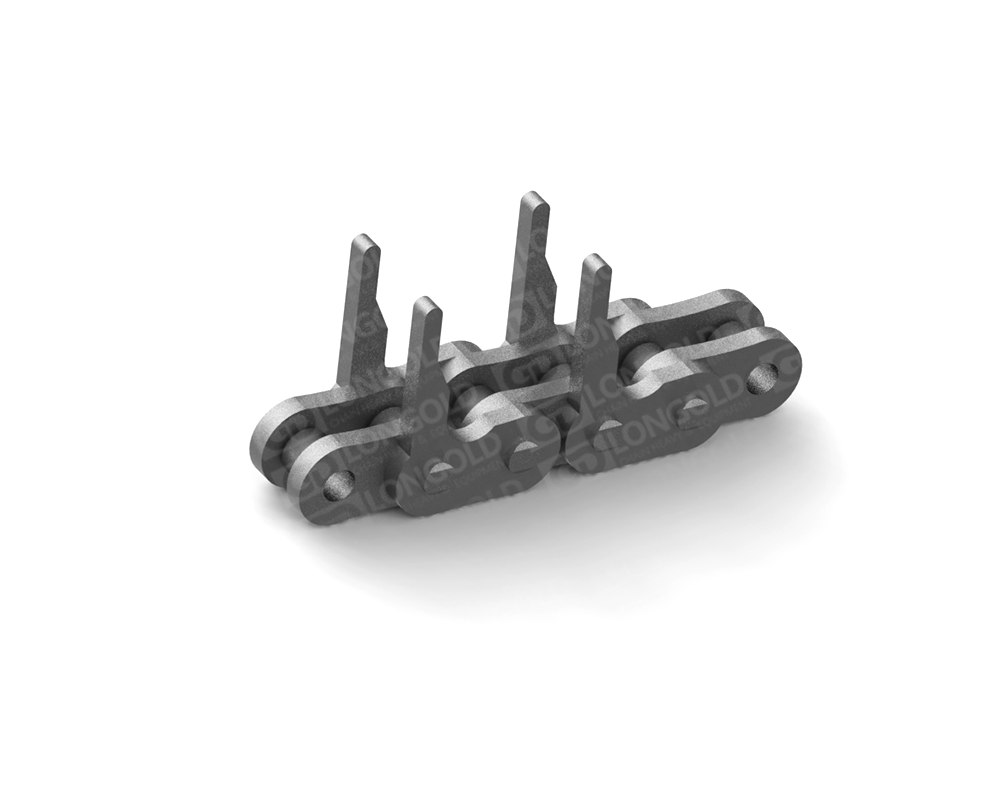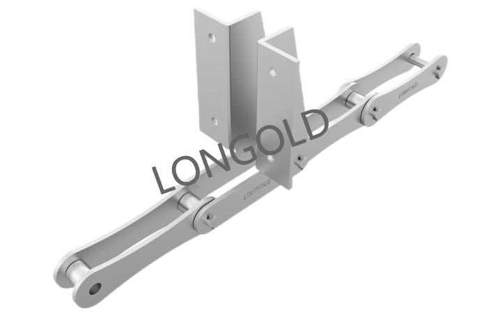 鏈條本體采用35(06C)鏈條,外鏈板采用特殊附件的結(jié)構(gòu),鏈板向上延伸加裝齒片。采用不銹鋼SUS304材質(zhì),用于電子行業(yè)的電子元件生產(chǎn)輸送線