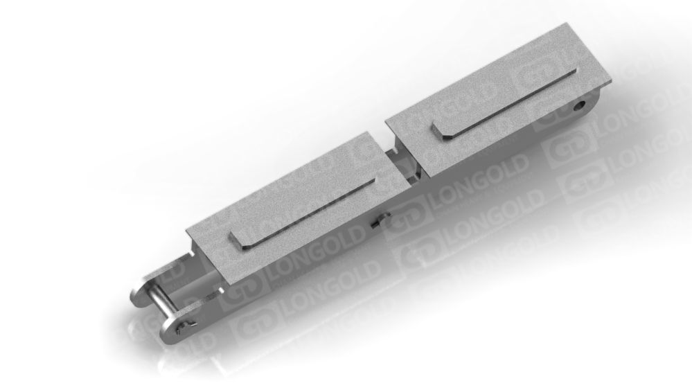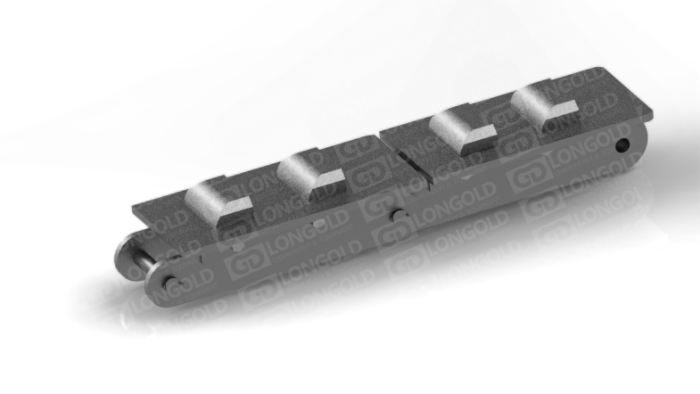 依靠鏈板底部底座附帶的折彎板上的孔將鏈條固定,能防止鏈條在運輸過程中出現(xiàn)抖動蛇形等情況,同時鏈板為直板型,方便鋼材的放置和運輸。