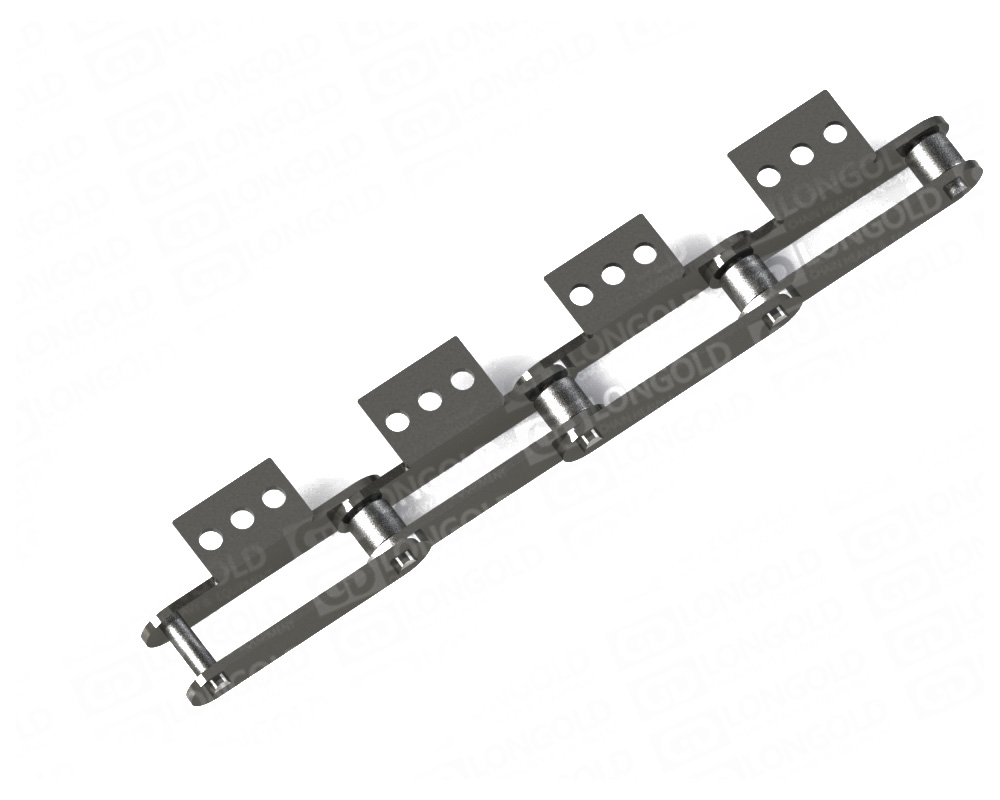 與GS規(guī)格相比,套筒~滾子間的磨損性能提高2倍,鏈銷~套筒間的磨損性能提高1.5倍,R滾子、F滾子的容許負荷提高1.3倍??墒褂脺囟拳h(huán)境: -20°C~400°C。英制尺寸系列有多個尺寸,不同尺寸有著不同的抗拉強度,能夠適應(yīng)各類輸送環(huán)境。根據(jù)不同附件有著不同的輸送方式。