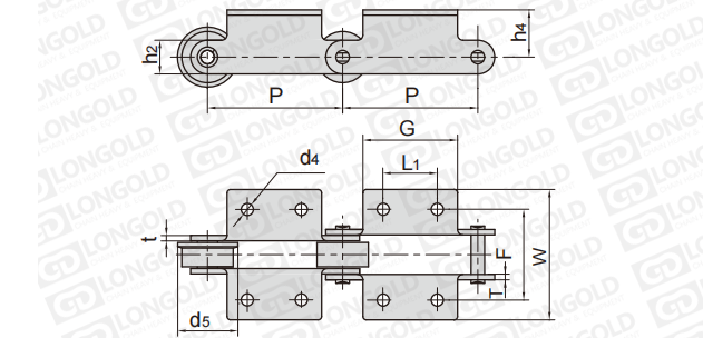 鏈條節(jié)距為非標規(guī)格,需要安裝特定的附件,以用于物料的輸送。