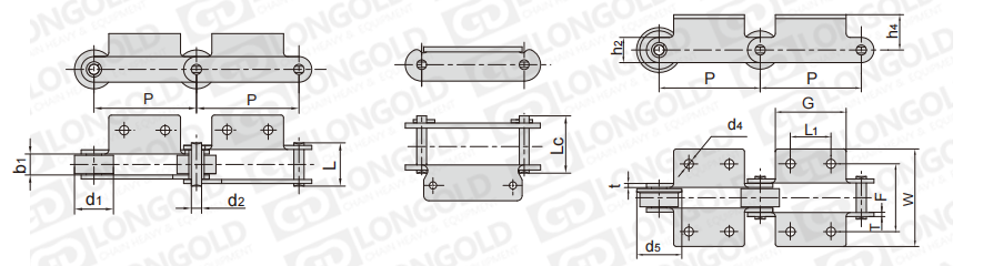 鏈條節(jié)距為非標(biāo)規(guī)格,需要安裝特定的附件,以用于物料的輸送。