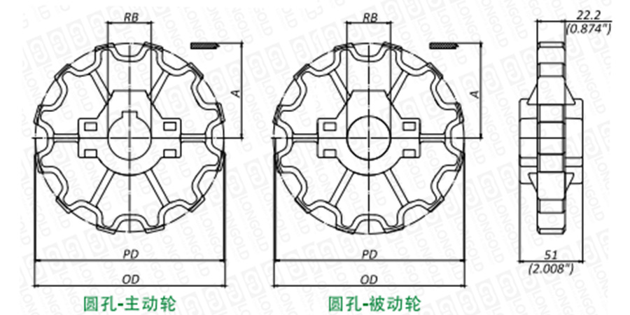 上圖為882系列鏈輪-注塑分體式主動(dòng)輪以及被動(dòng)輪的結(jié)構(gòu)圖。