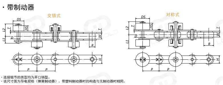 (2)鏈條本體的滾子類(lèi)型:S=S滾子,R=R滾子,RP=塑料R滾子