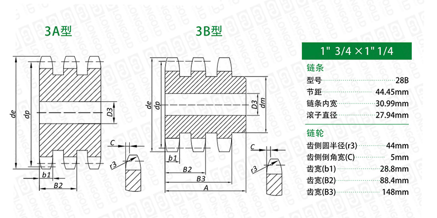 三排B型鏈輪型號(hào)